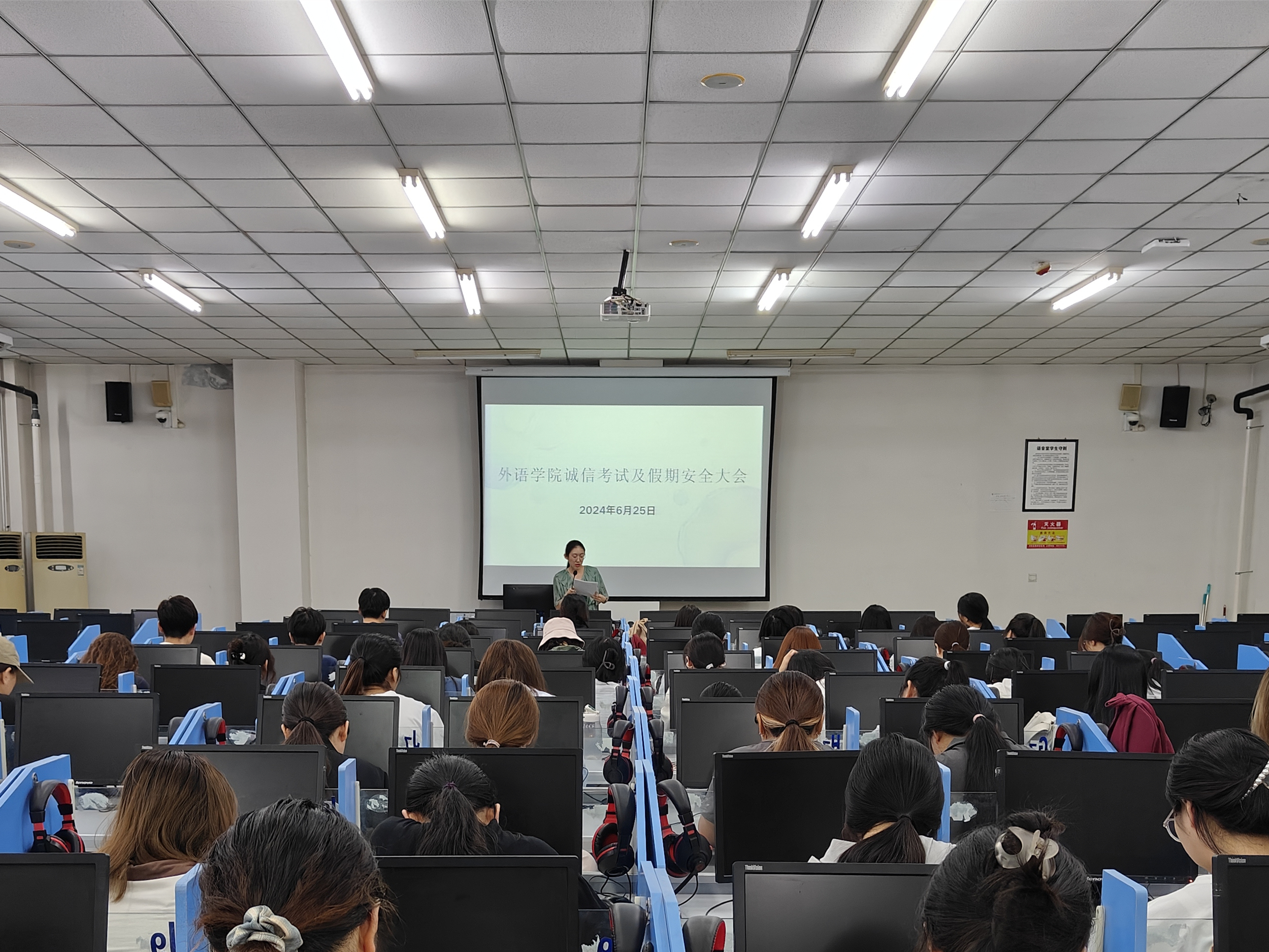 为强调考试纪律,强化学生假期安全意识,外语学院于6月25日下午在3601教室召开诚信考试和假期安全大会。会议由辅导员马彦韬主持,2021级全体学生参加。
