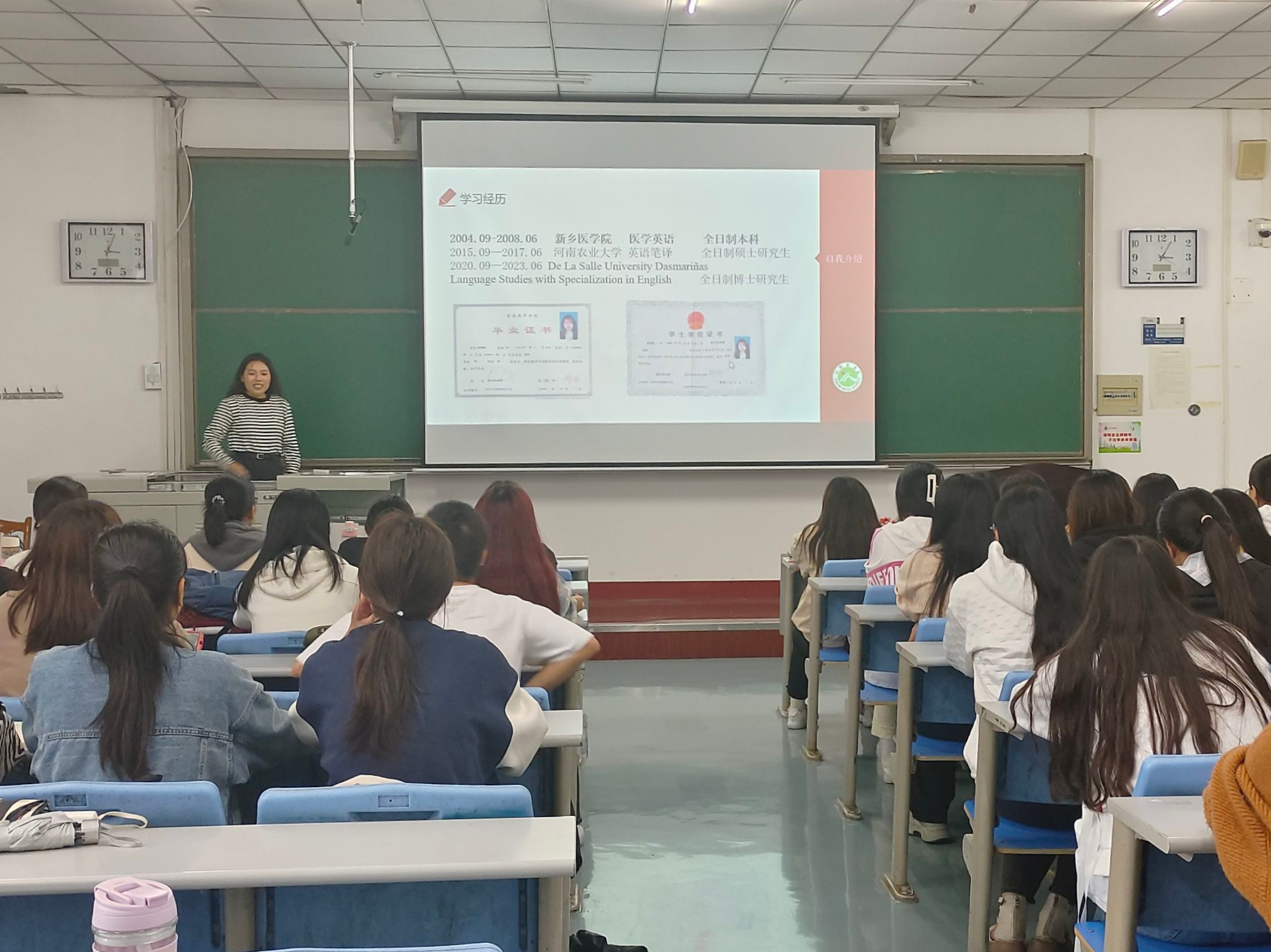 为增进母校与校友的紧密联系,发挥优秀校友的模范引领作用,引导同学们树立正确的择业观、就业观,9月26日,外语学院在3305教室举办校友专题讲座。讲座由外语学院党总支副书记李超英主持,我院优秀校友河南科技学院外语学院教师单翔燕,河南省科技期刊研究中心编辑申蓝主讲,2022级全体学生参加。