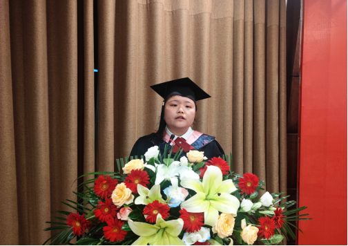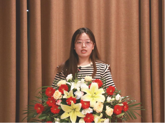 2023届本科毕业生代表王炎迪同学在毕业典礼上发言。她对学院和老师们的悉心教导和精心栽培致以最真诚的感谢,深情回顾了大学四年的青葱岁月,表示将牢记“明德、博学、至爱、致用”的校训,用奋斗书写华彩篇章。