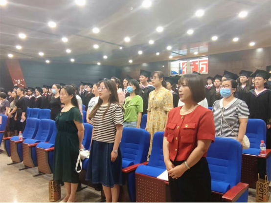 毕业典礼在雄壮的国歌声中拉开序幕。