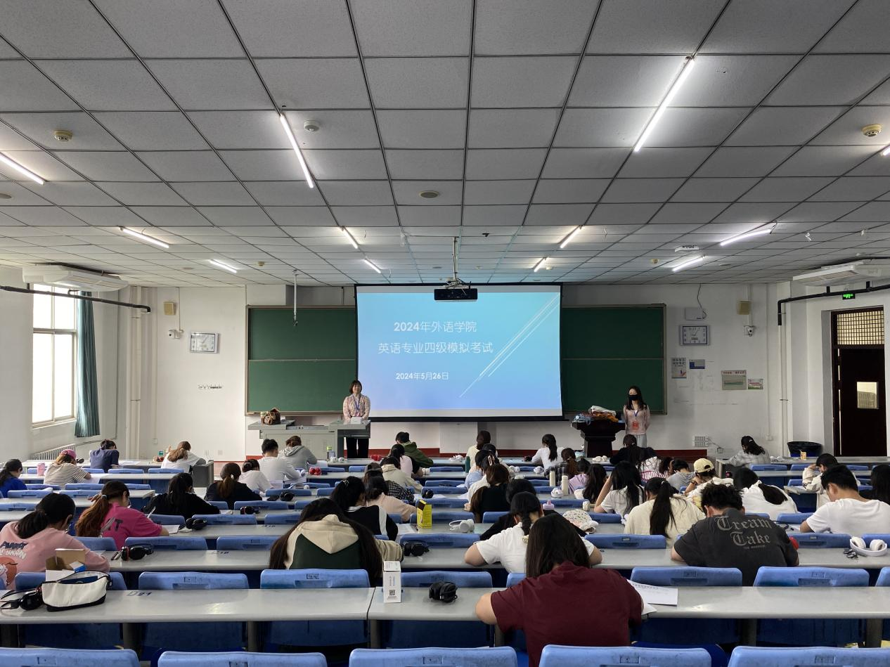 为全面促进学院教风学风建设,帮助学生熟悉考试流程,提高备考效率,增强实战经验,5月26日上午,外语学院英语系和翻译系组织开展英语专业四级模拟考试,22级全体同学参与了本次模拟考试。
