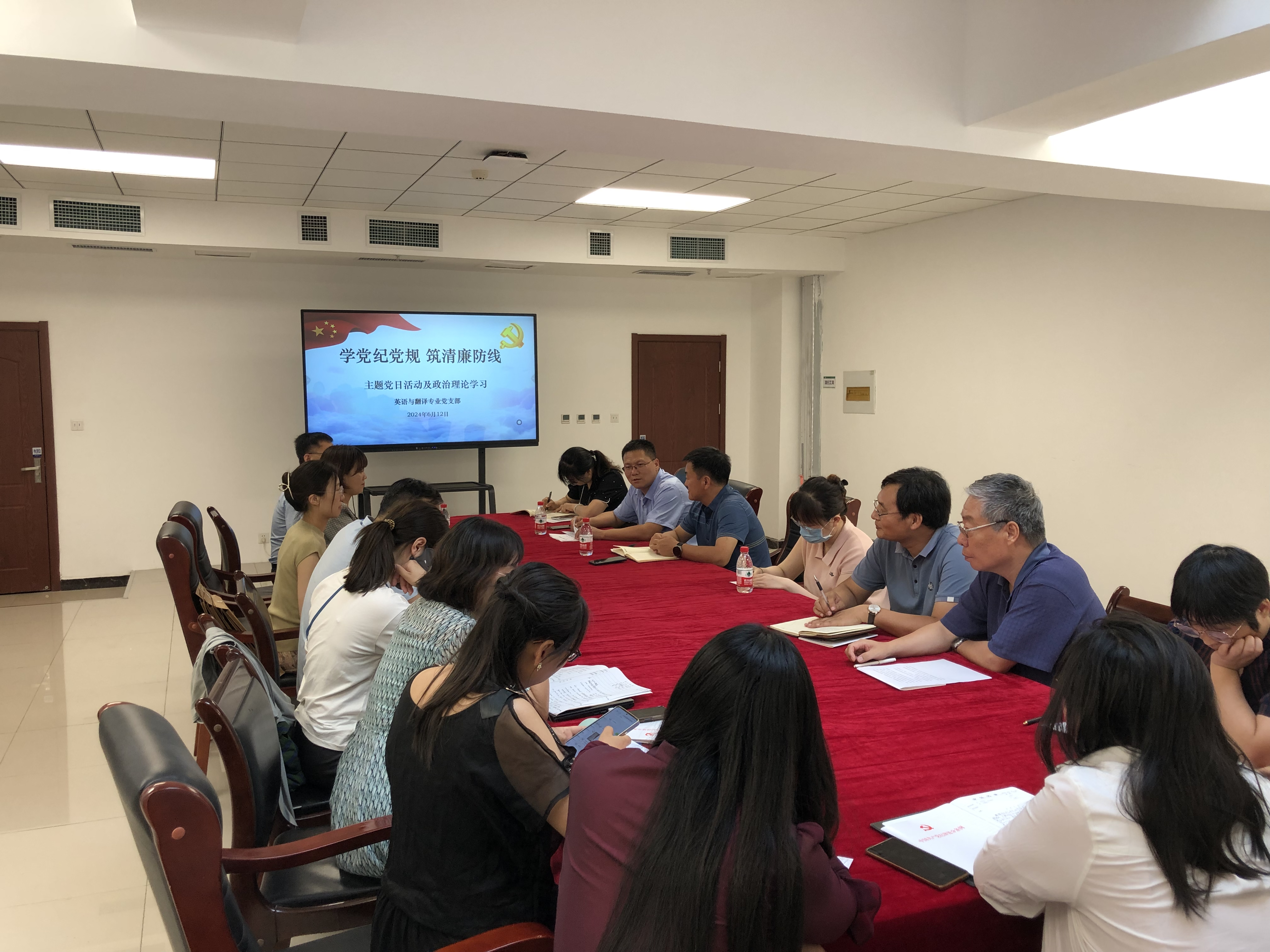 6月12日下午,学校科技发展部主任于毅参加外语学院英语与翻译专业党支部“学党纪党规 筑清廉防线”主题党日活动及政治理论学习。