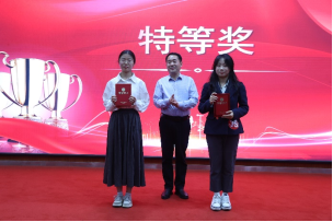 校党政办公室主任袁秀伟为特等奖获得者颁奖
