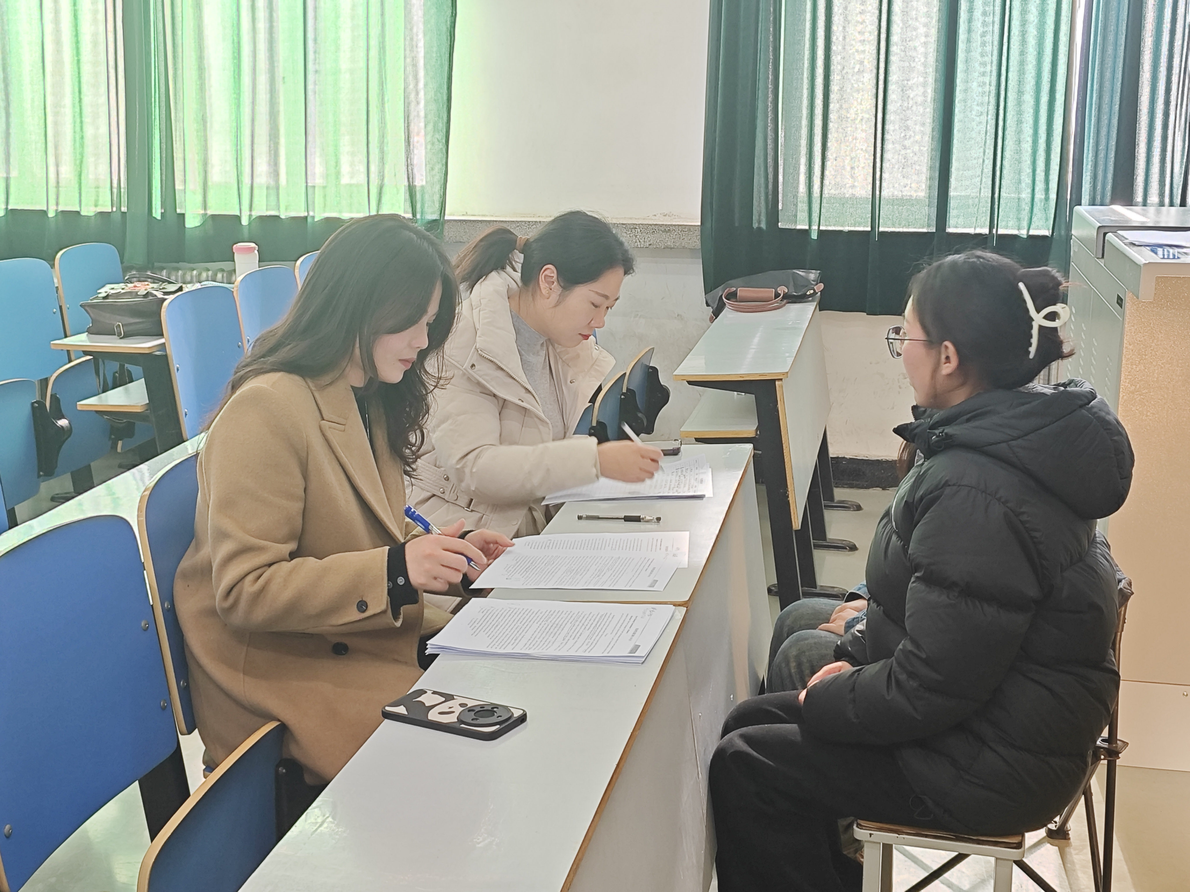 宣讲会后,三十余名学生参加了现场组织的笔试和分组面试。