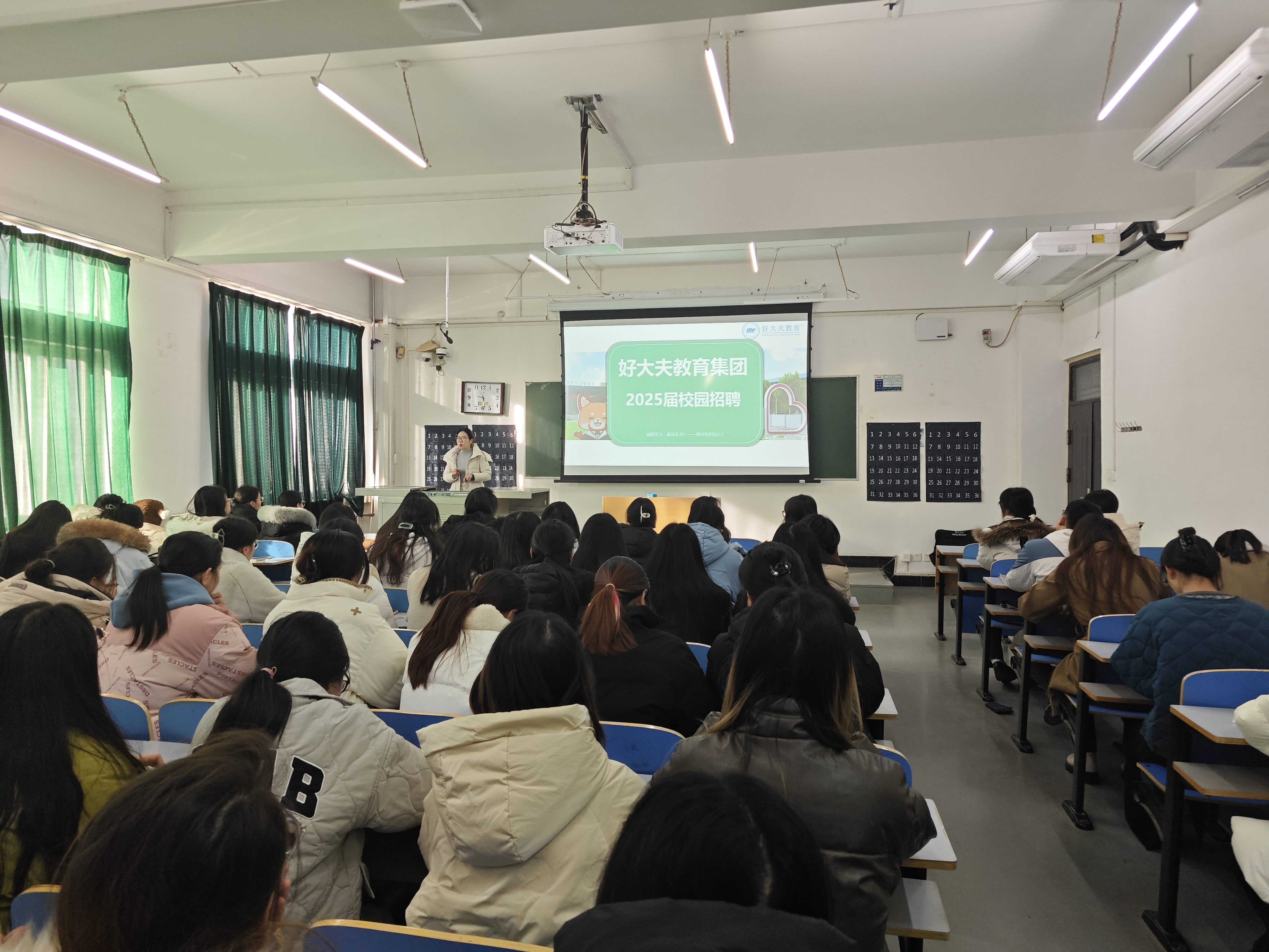 外语学院于1月7日上午举办好大夫教育集团专场招聘会,好大夫教育集团招聘经理艾静和教学总监姚硕为2025届全体毕业生做宣讲,并进行现场面试。