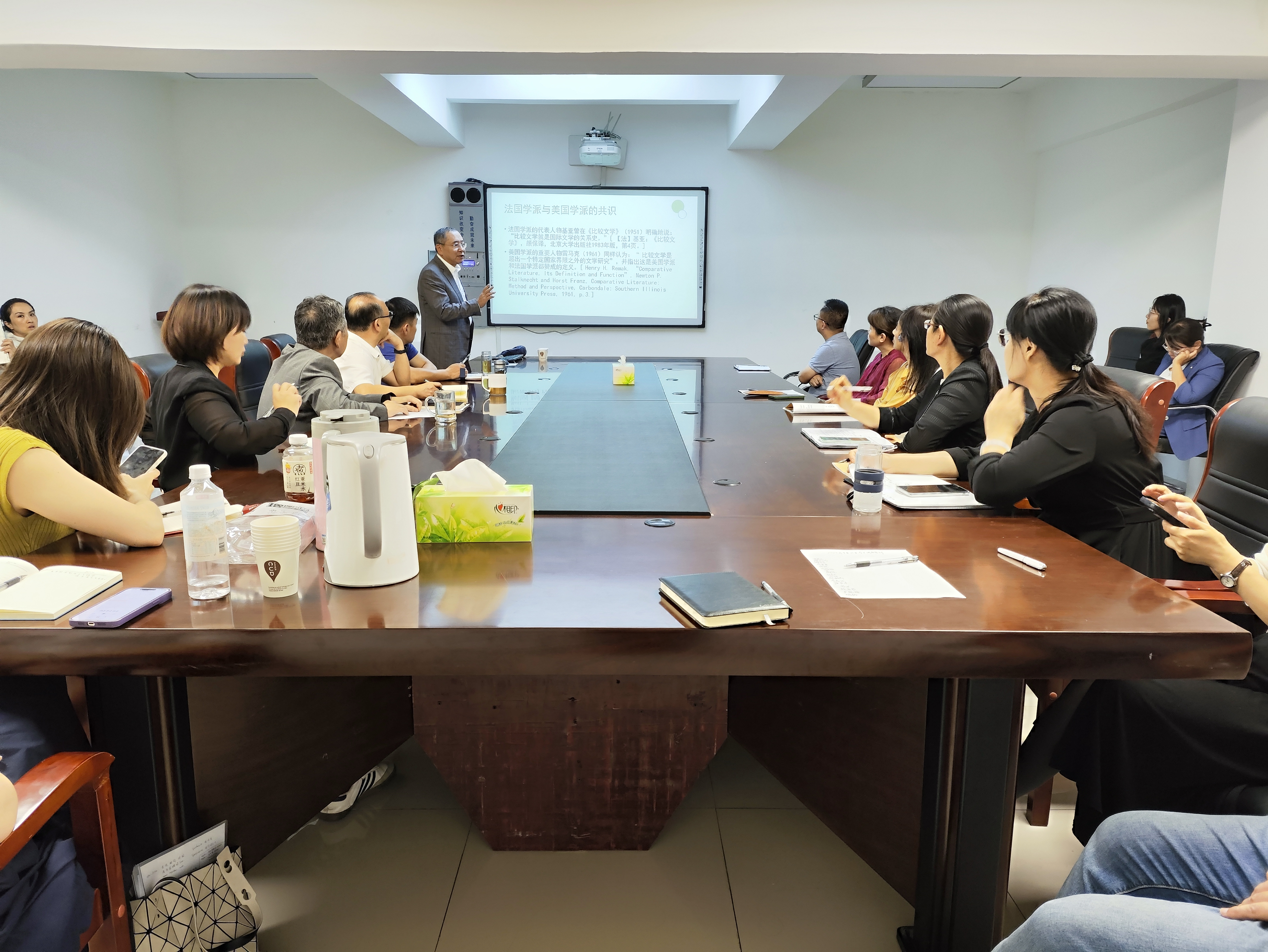 报告结束后,李教授耐心解答了与会师生提出的问题,展现出深厚的学术造诣。此次讲座不仅深化了大家对比较文学国内研究现状的认知,也促使我们更清晰地认识到中国文学走向世界的可行路径。