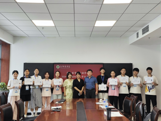 在闭营仪式上,外语学院副书记李超英、科研副院长雍文明和教学副院长蒋岚为营员们颁发了结业证书并合影留念。营员们满载而归,不仅收获了知识与技能,更坚定了投身翻译事业、服务医学领域的决心。