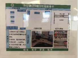 认真地开展了桌面、线路、抽屉、卫生、的检查,档案盒进行了分类标签的细化、衣架与垃圾桶进行了定位、贴了区域线条、添加了柜子的维持基准卡、分管科室也添加了整体维持基准卡、所有细节在逐步完善,做到一天一维护、一天一清理、养成6S制度的习惯,保持6S整理后的效果。