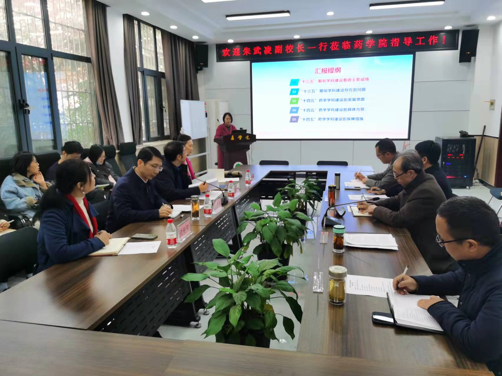 11月19日上午,校党委委员、副校长朱武凌到药学院开展学科建设专题调研指导工作,学科建设办公室负责人陪同调研。调研会在药学院会议室举行,药学院党政班子成员、学科团队成员及学科建设办公室工作人员参加了调研会。