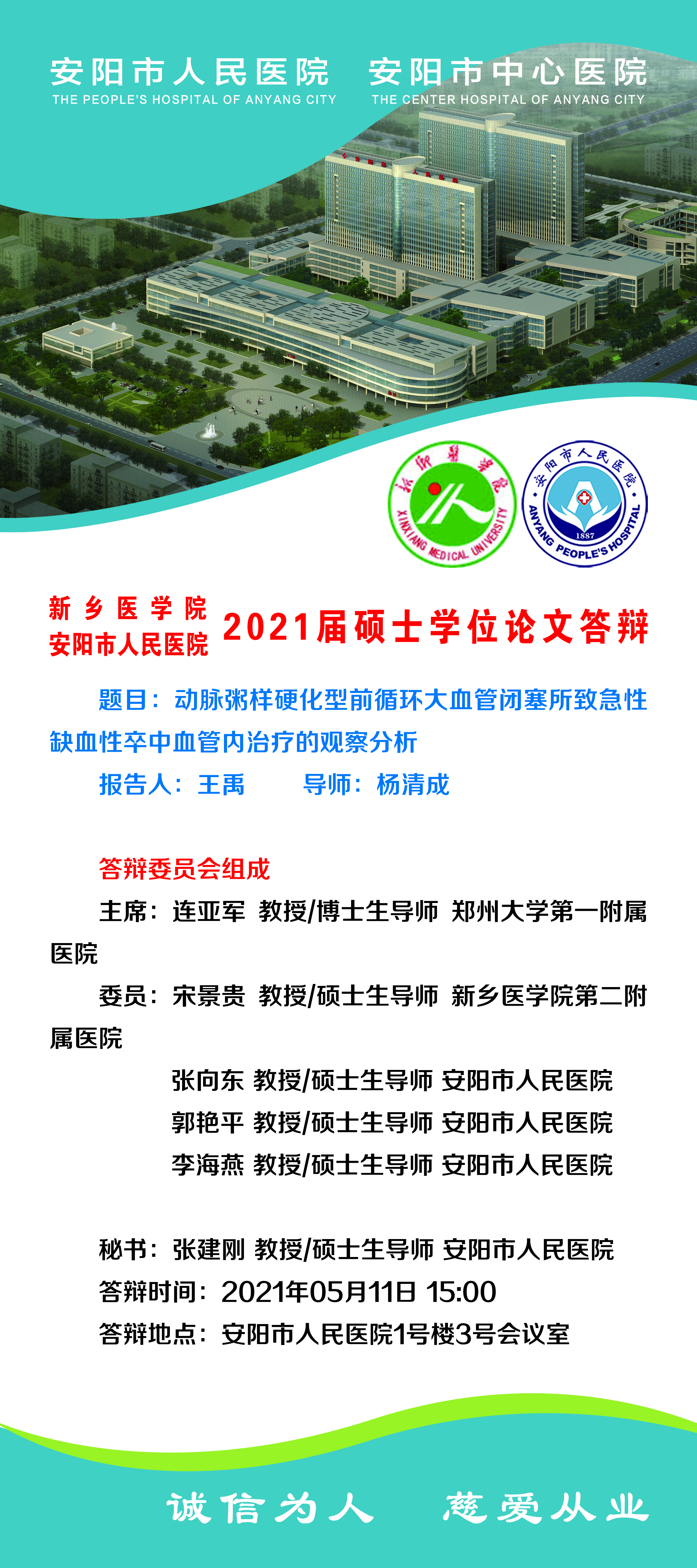 2021年上半年华亿在线手机版(大中国区)附属安阳市人民医院神经病学硕士研究生答辩海报