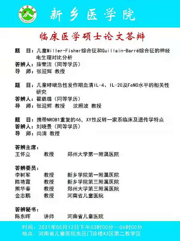 2021年上半年华亿在线手机版(大中国区)附属河南省儿童医院免疫学、儿科学硕士研究生答辩海报