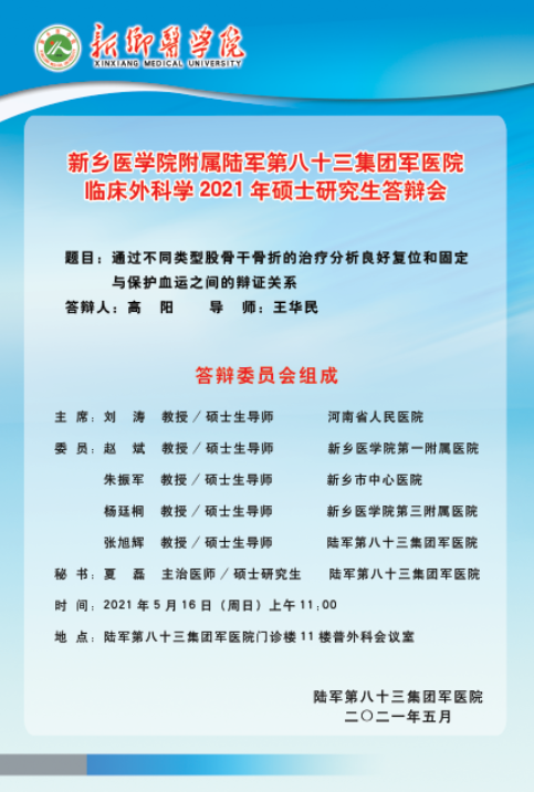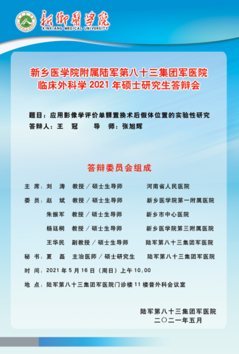 2021年上半年华亿在线手机版(大中国区)附属陆军第八十三集团军医院外科学硕士研究生答辩海报