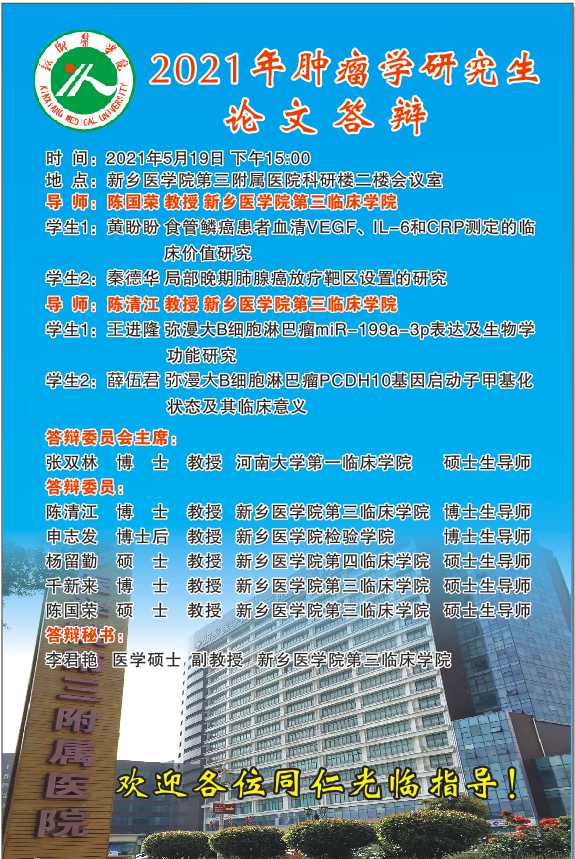 2021年上半年华亿在线手机版(大中国区)第三临床学院肿瘤学硕士研究生答辩海报