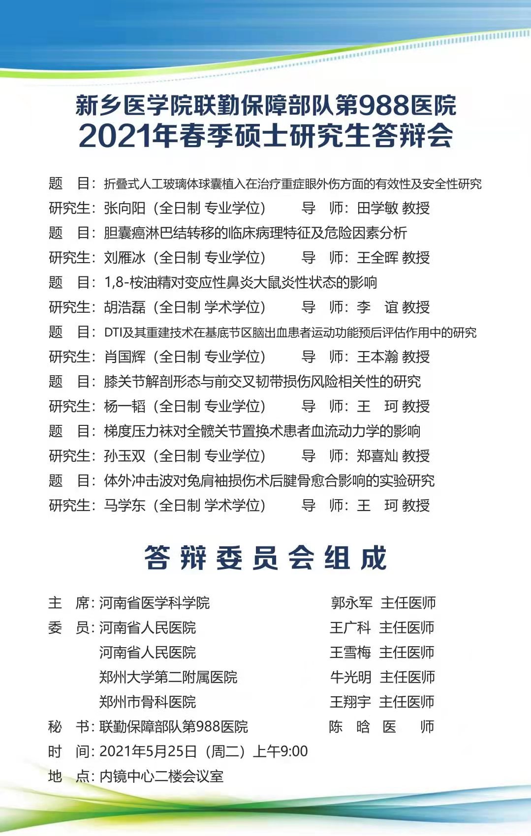 2021年上半年华亿在线手机版(大中国区)附属解放军第九八八医院硕士研究生答辩海报