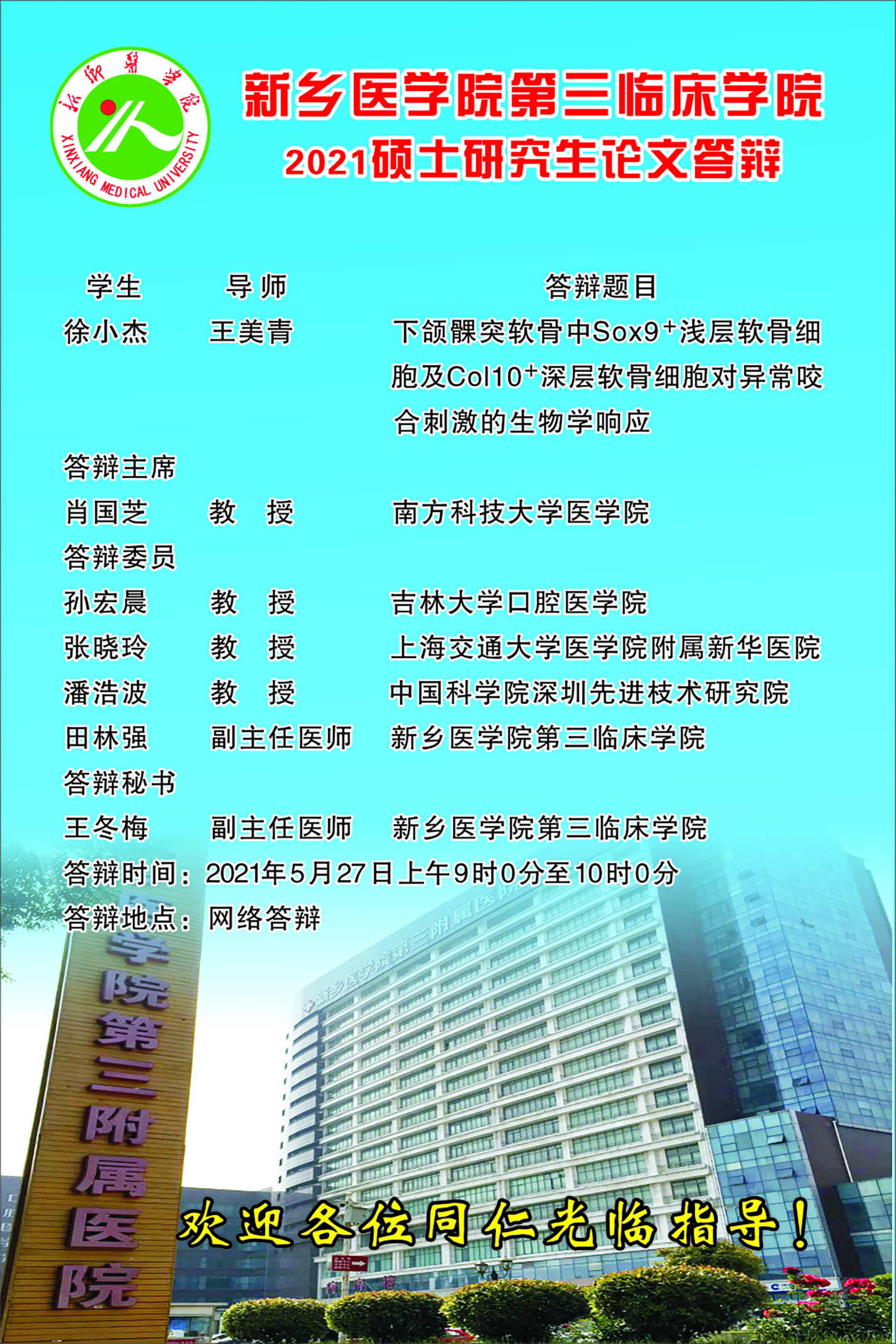 2021年上半年华亿在线手机版(大中国区)第三临床学院硕士研究生答辩海报