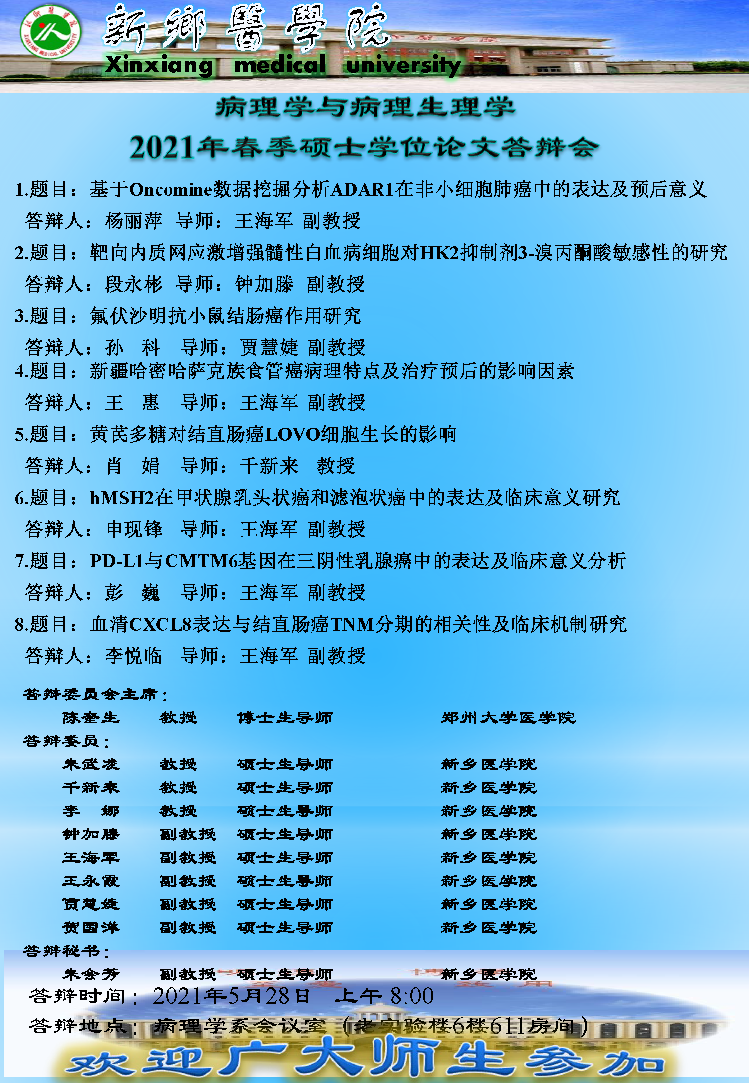 2021年上半年华亿在线手机版(大中国区)基础医学院病理学与病理生理学硕士研究生答辩海报
