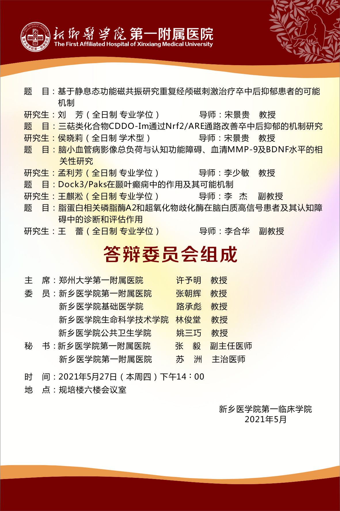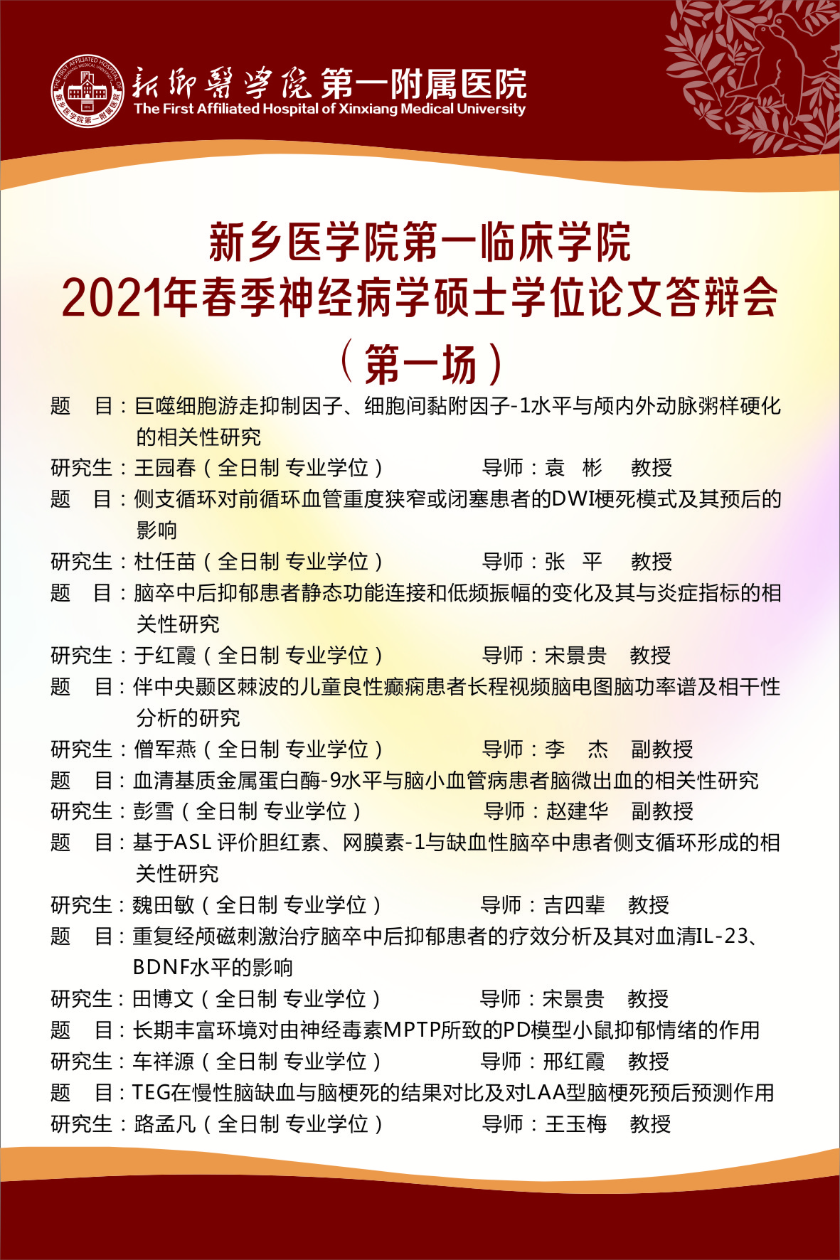 2021年上半年华亿在线手机版(大中国区)第一临床学院神经病学硕士研究生答辩海报