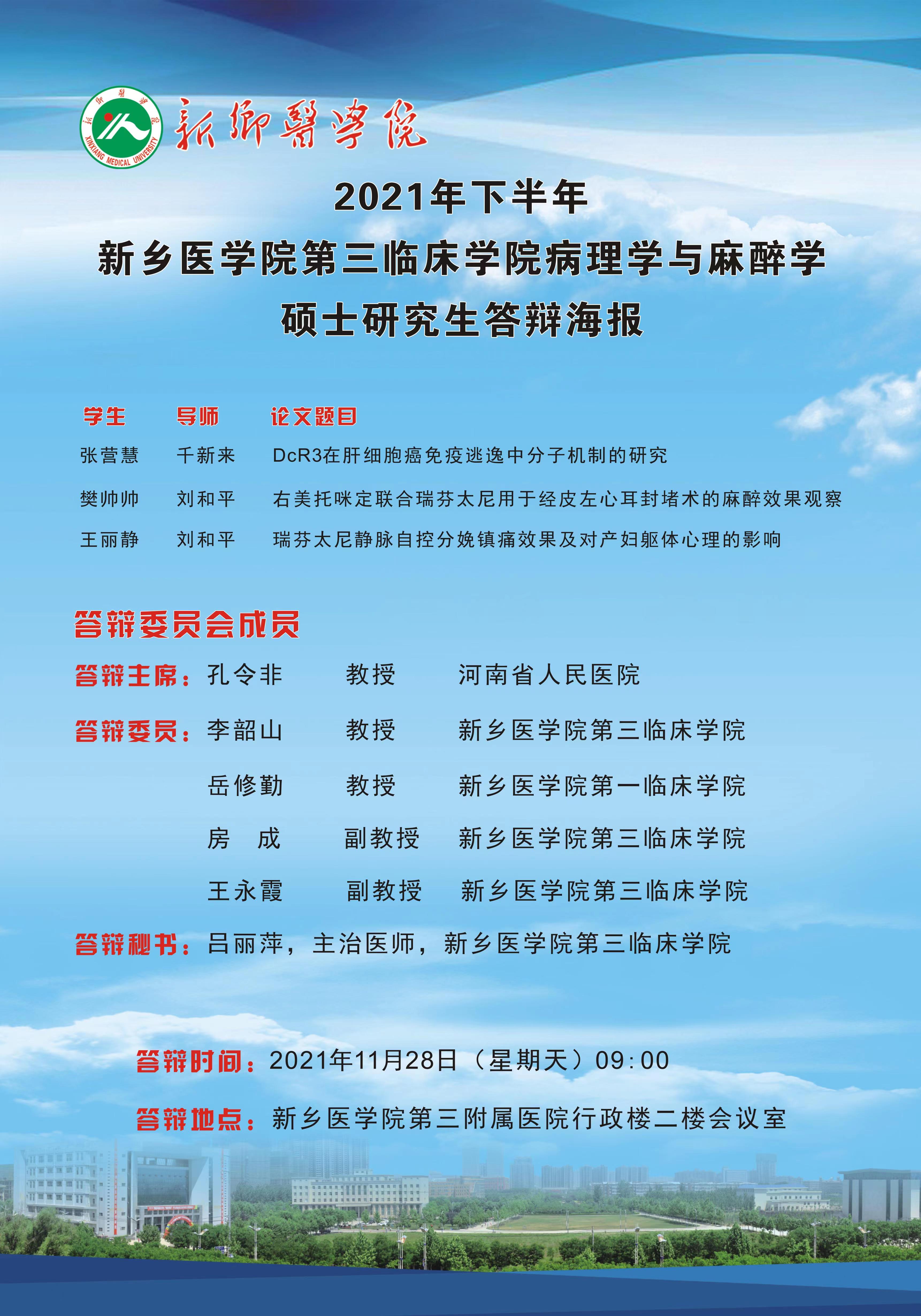 华亿在线手机版(大中国区)第三临床学院2021年下半年病理学、麻醉学硕士学位论文答辩会