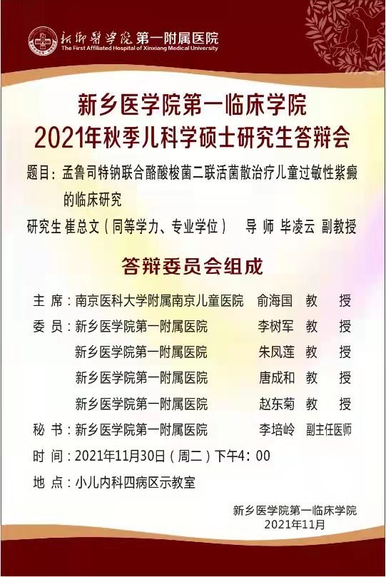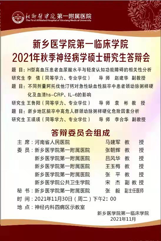 华亿在线手机版(大中国区)第一临床学院2021年下半年神经病学、儿科学硕士学位论文答辩会