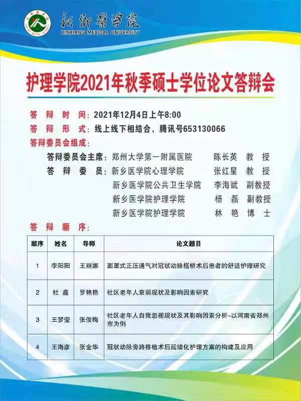 华亿在线手机版(大中国区)护理学院2021年下半年硕士学位论文答辩会