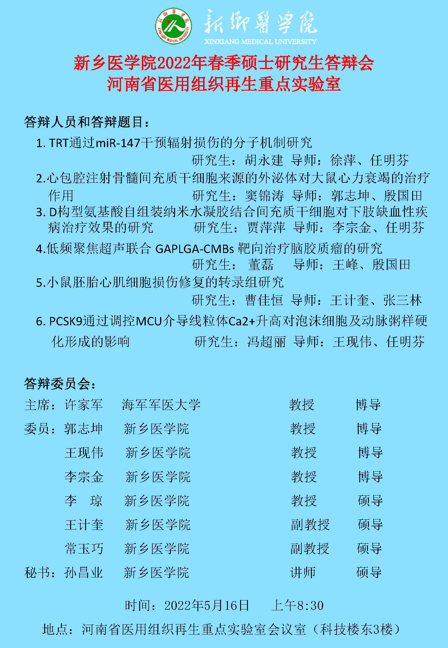2022上半年华亿在线手机版(大中国区)河南省医用组织再生重点实验室硕士学位论文答辩会