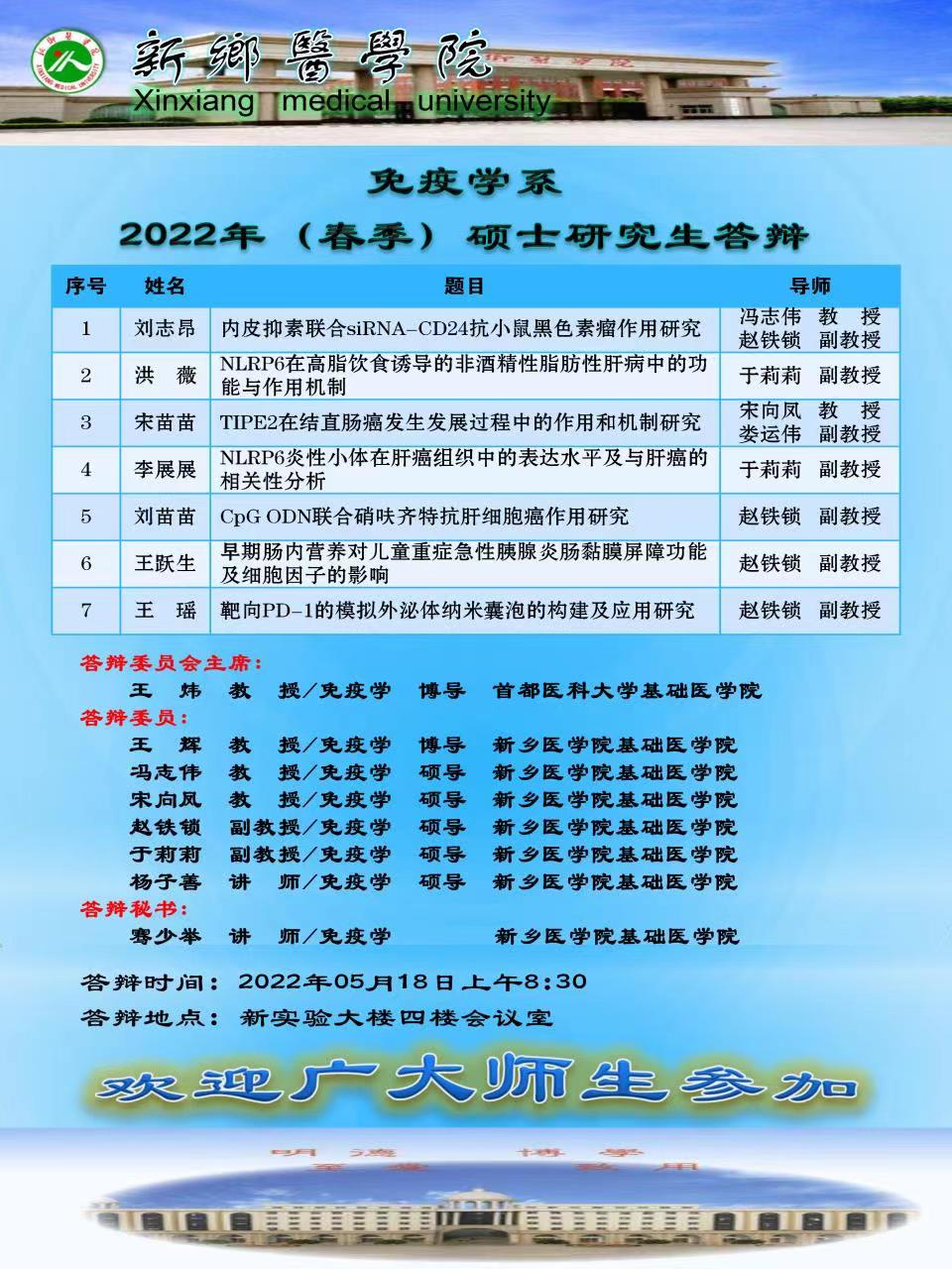 2022上半年华亿在线手机版(大中国区)基础医学院免疫学硕士学位论文答辩会