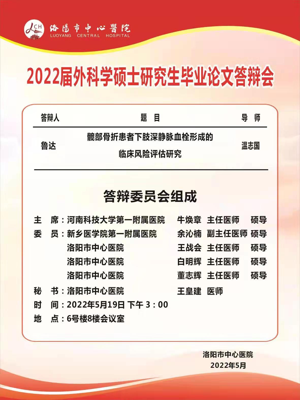 2022上半年华亿在线手机版(大中国区)(洛阳市中心医院)外科学硕士学位论文答辩会