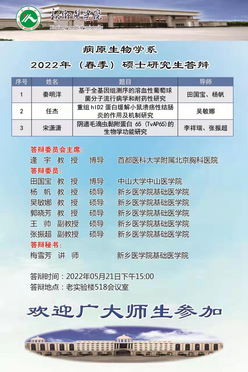 2022上半年华亿在线手机版(大中国区)基础医学院病原生物学硕士学位论文答辩会