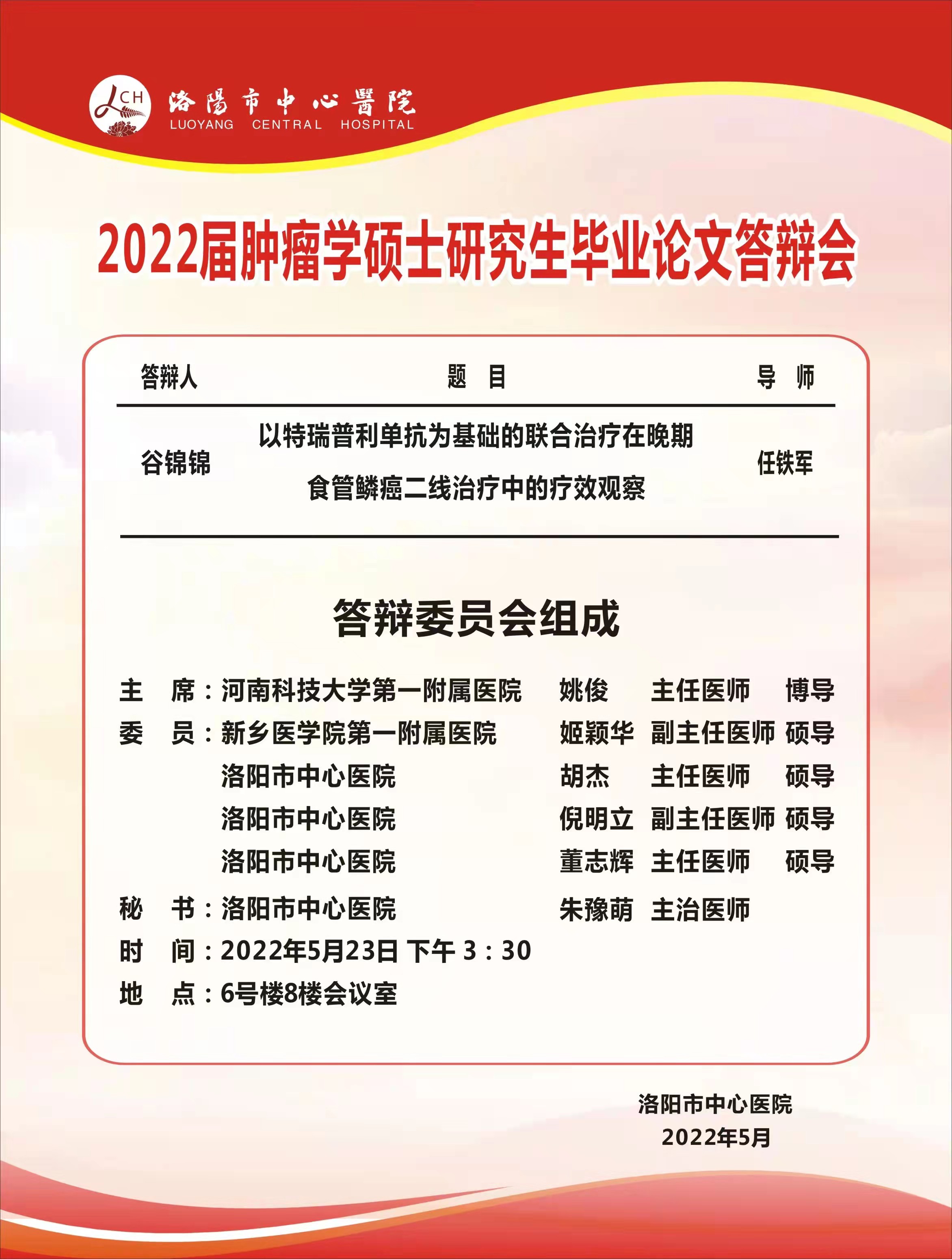 2022上半年华亿在线手机版(大中国区)(洛阳市中心医院)肿瘤学硕士学位论文答辩会