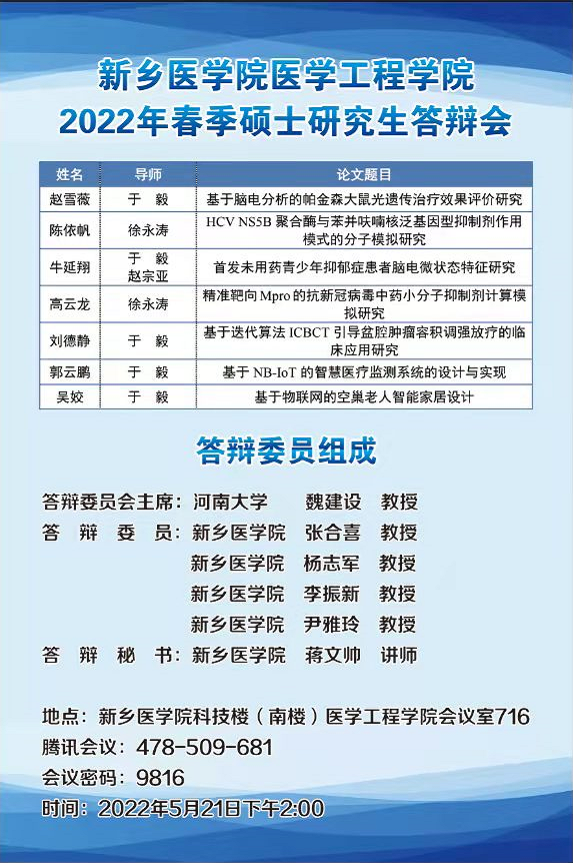 2022上半年华亿在线手机版(大中国区)医学工程学院硕士学位论文答辩会