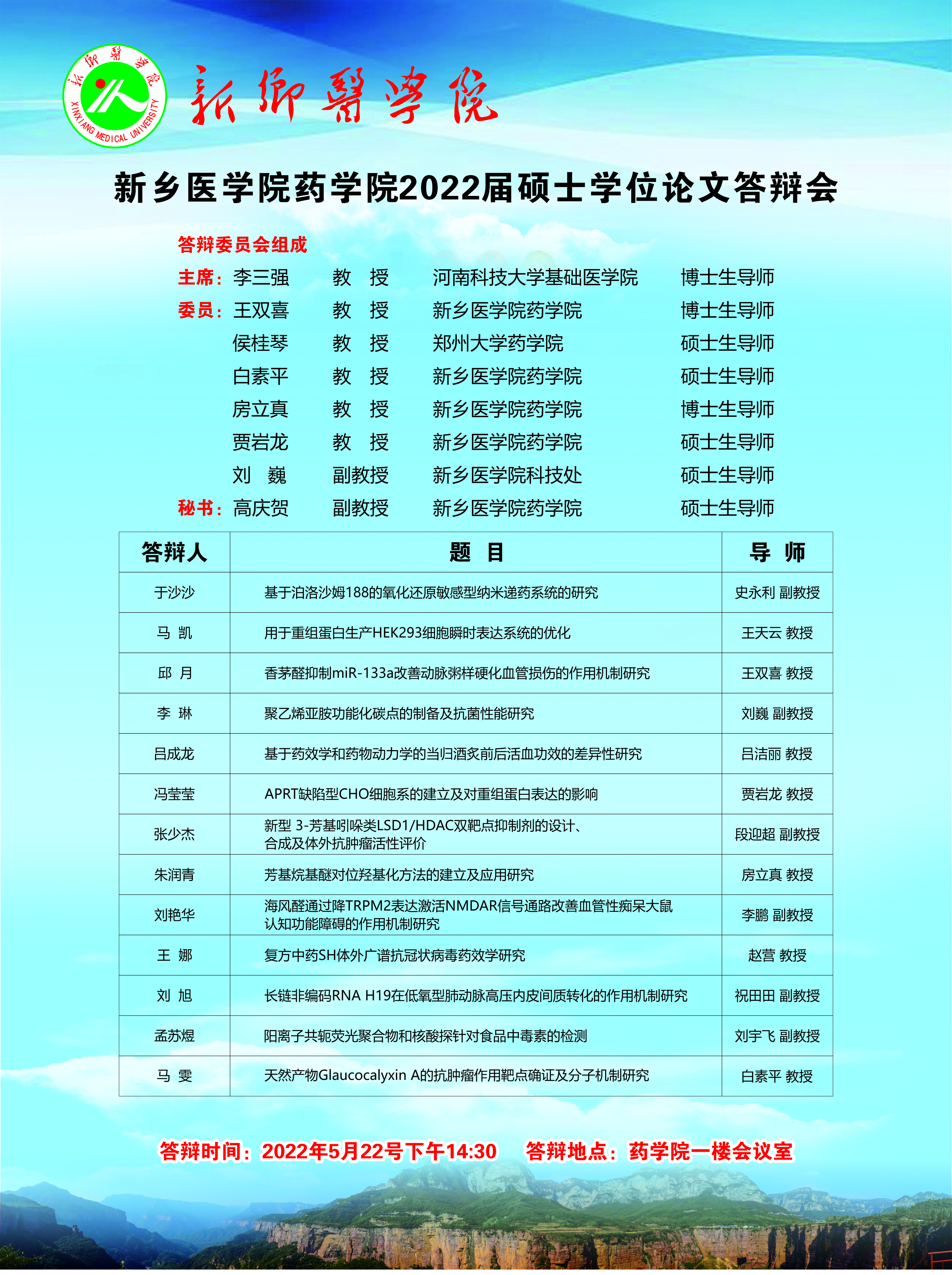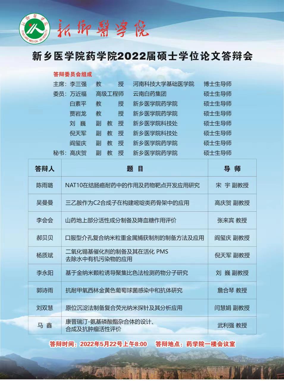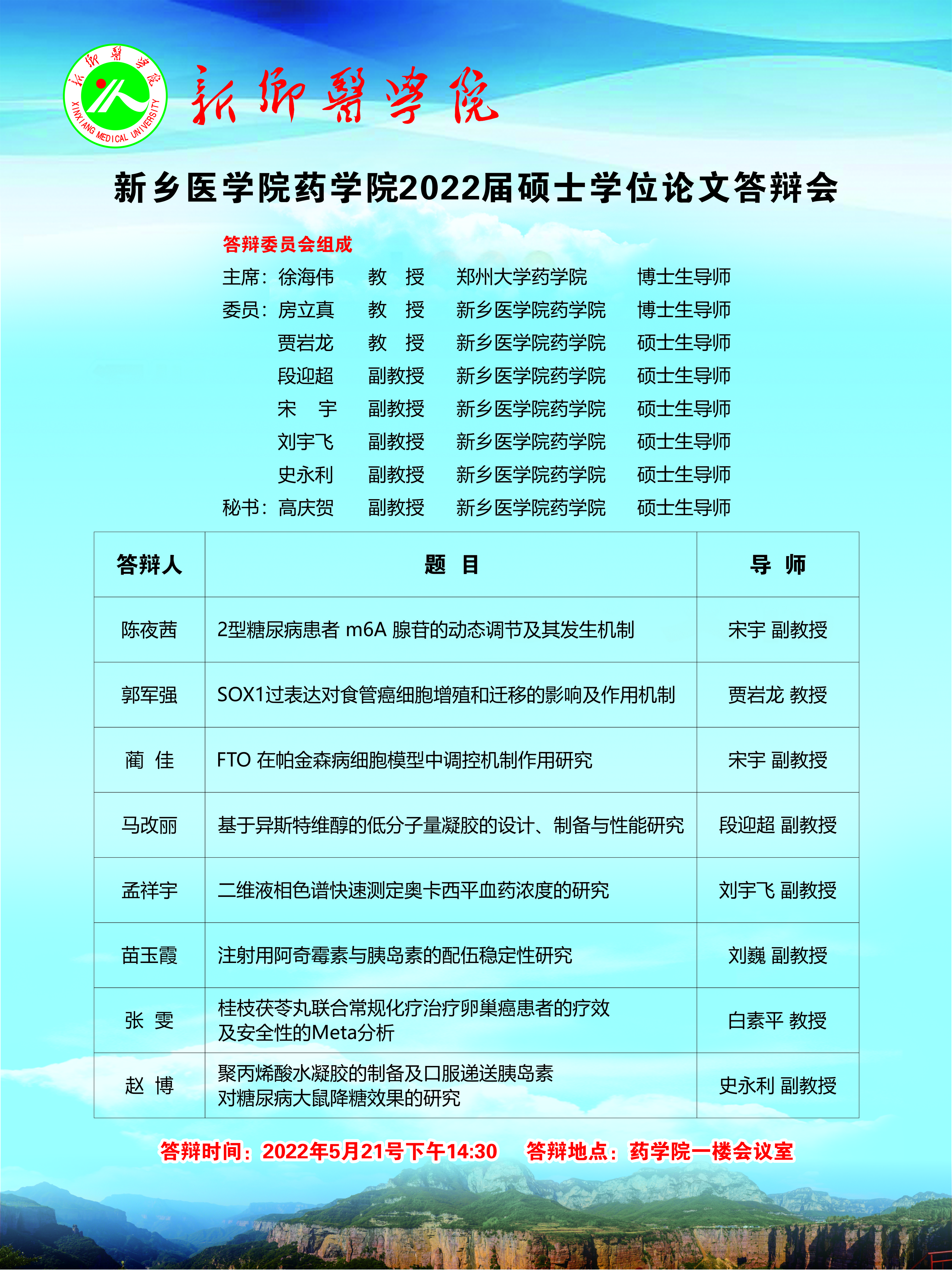 2022上半年华亿在线手机版(大中国区)药学院硕士学位论文答辩会