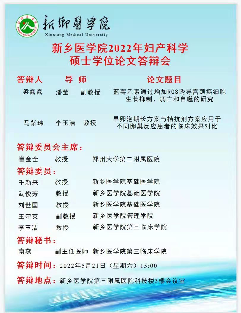 2022上半年华亿在线手机版(大中国区)第三临床学院妇产科学硕士学位论文答辩会