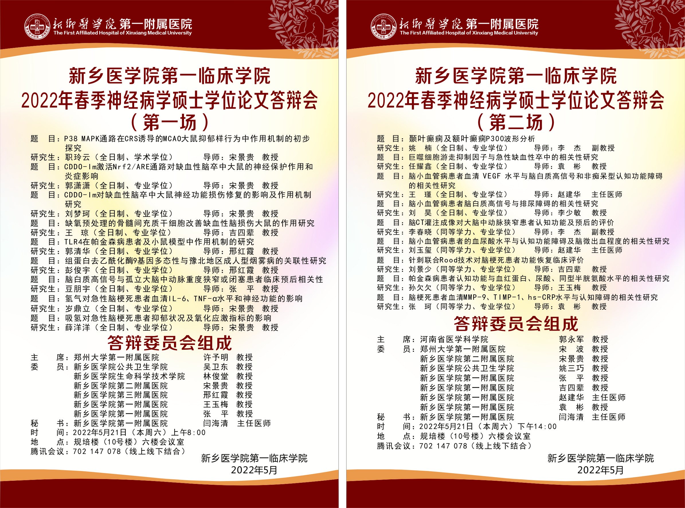 2022上半年华亿在线手机版(大中国区)第一临床学院神经病学硕士学位论文答辩会