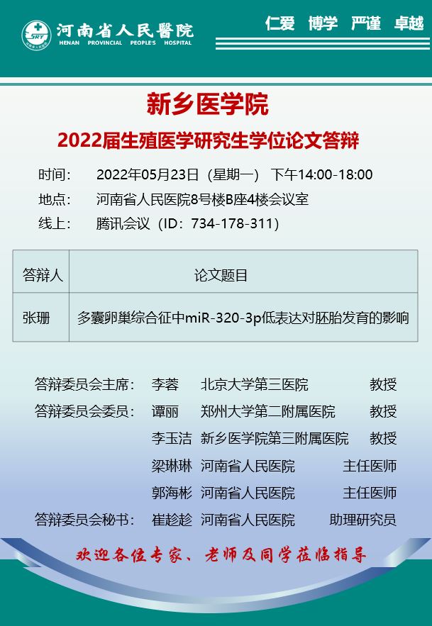 2022上半年华亿在线手机版(大中国区)(河南省人民医院)妇产科学硕士学位论文答辩会