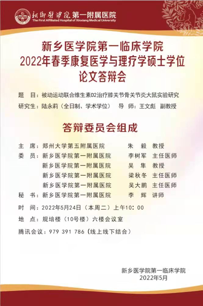 2022上半年华亿在线手机版(大中国区)第一临床学院康复医学与理疗学硕士学位论文答辩会
