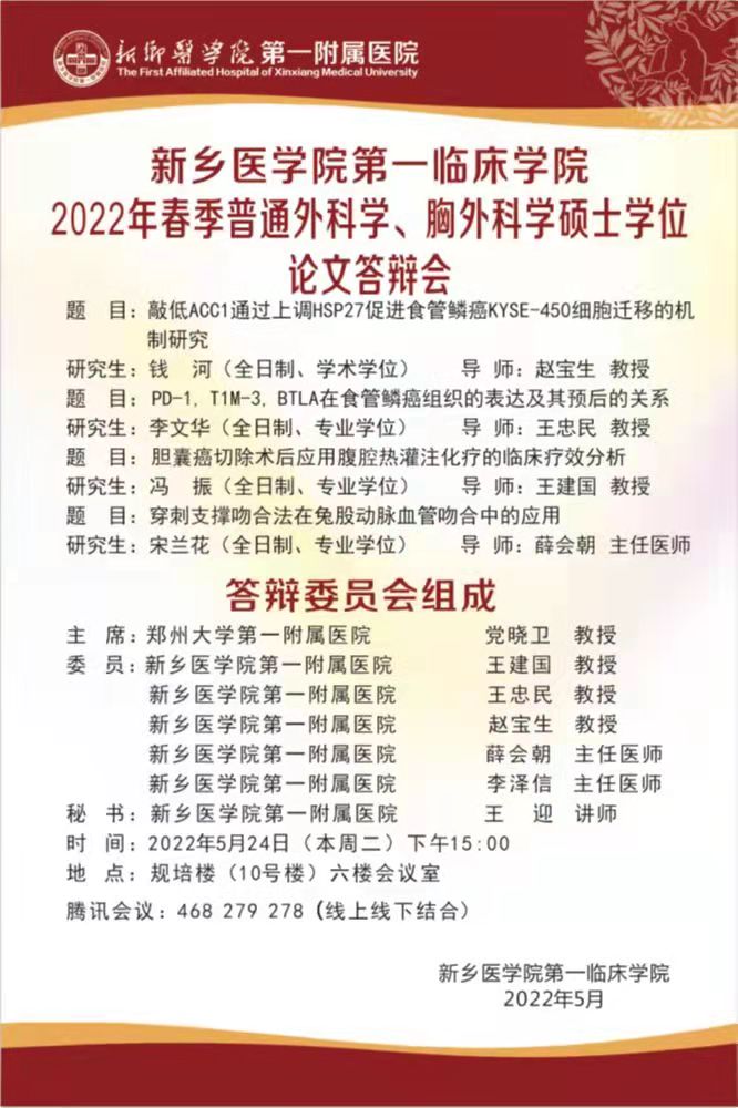 2022上半年华亿在线手机版(大中国区)第一临床学院外科学硕士学位论文答辩会