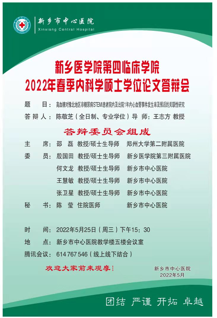 2022上半年华亿在线手机版(大中国区)(商丘市第一人民医院)护理、神经病学硕士学位论文答辩会