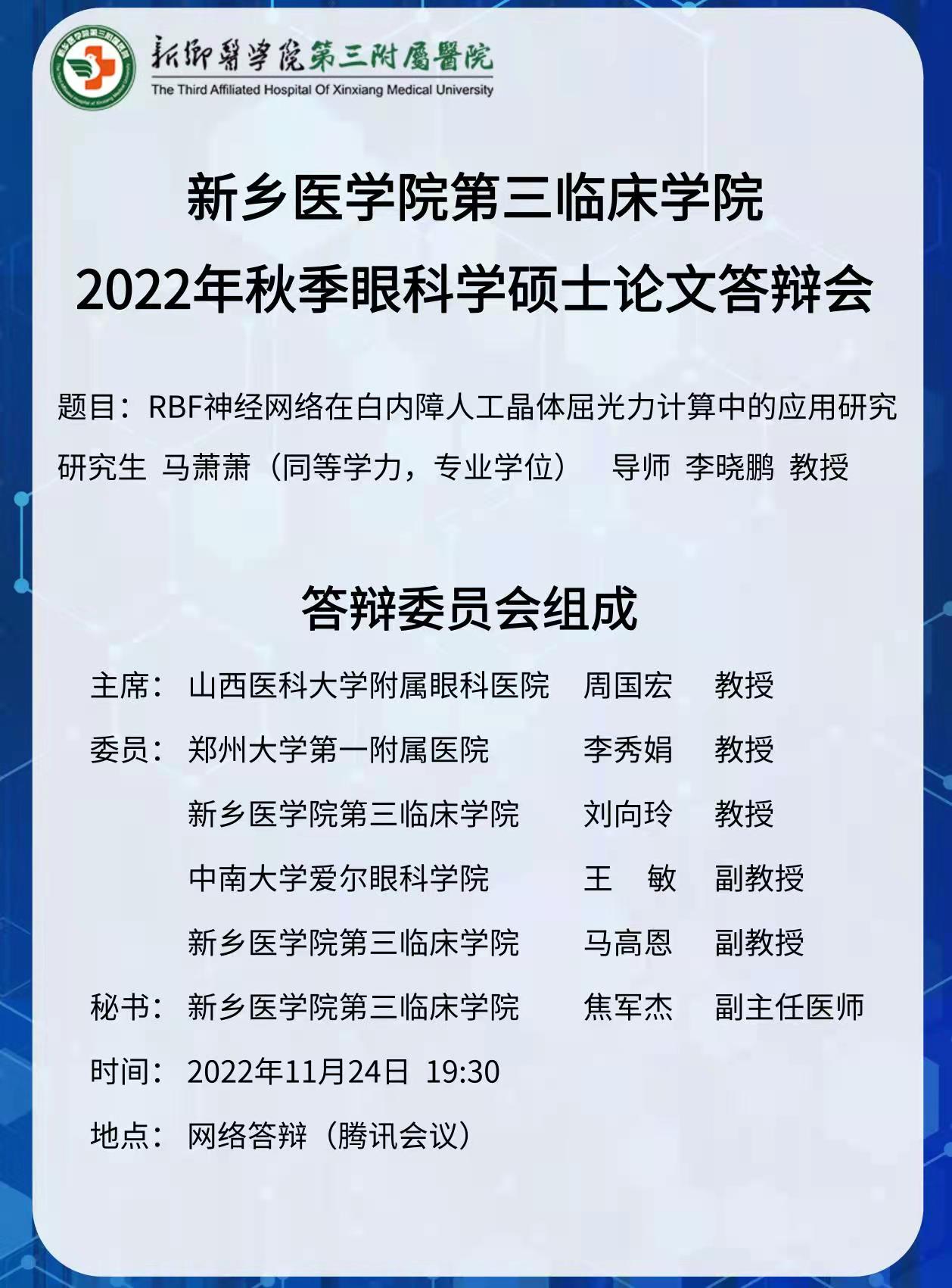 2022年秋季华亿在线手机版(大中国区)第三临床学院眼科学硕士论文答辩会