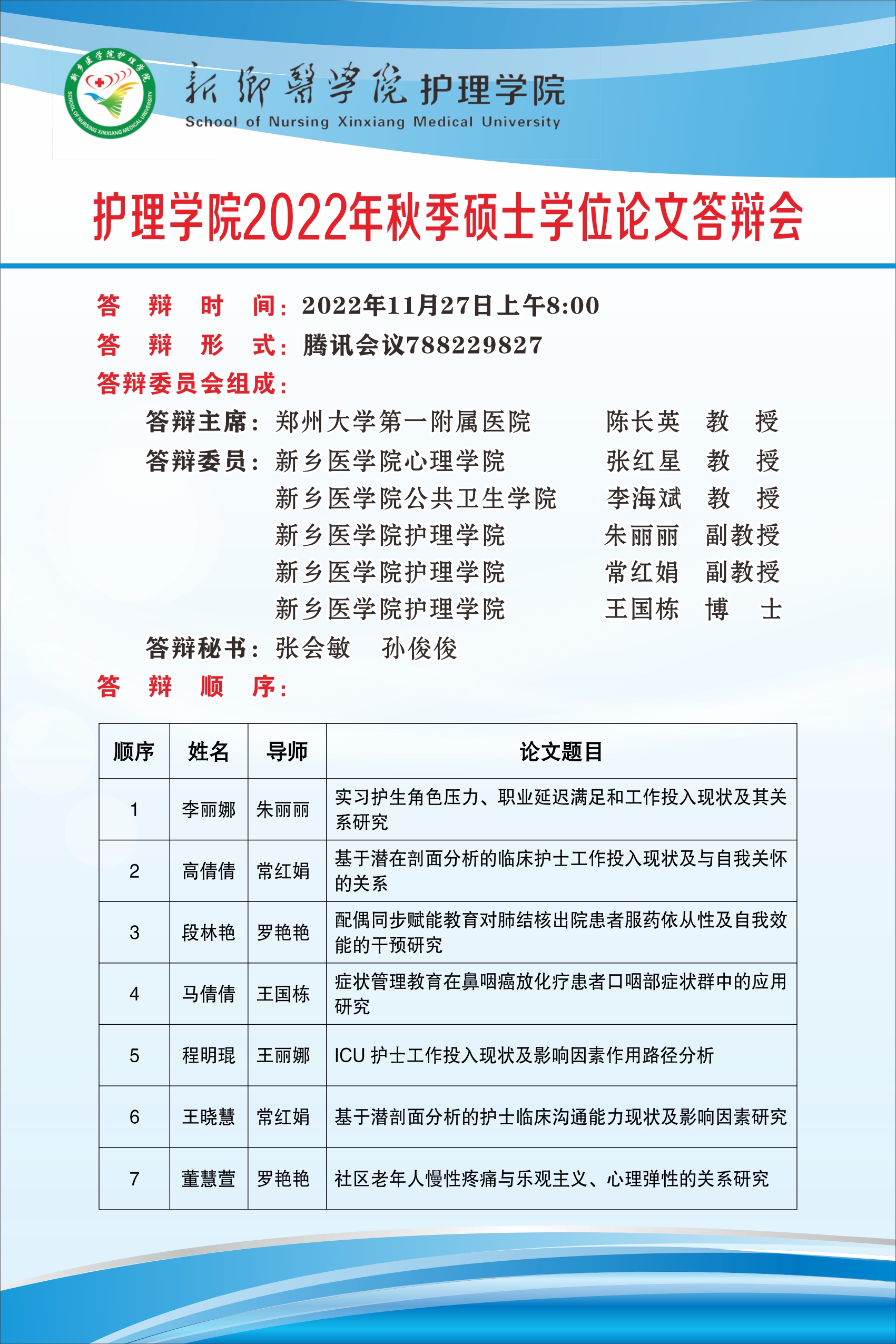 2022年秋季华亿在线手机版(大中国区)护理学院硕士论文答辩会