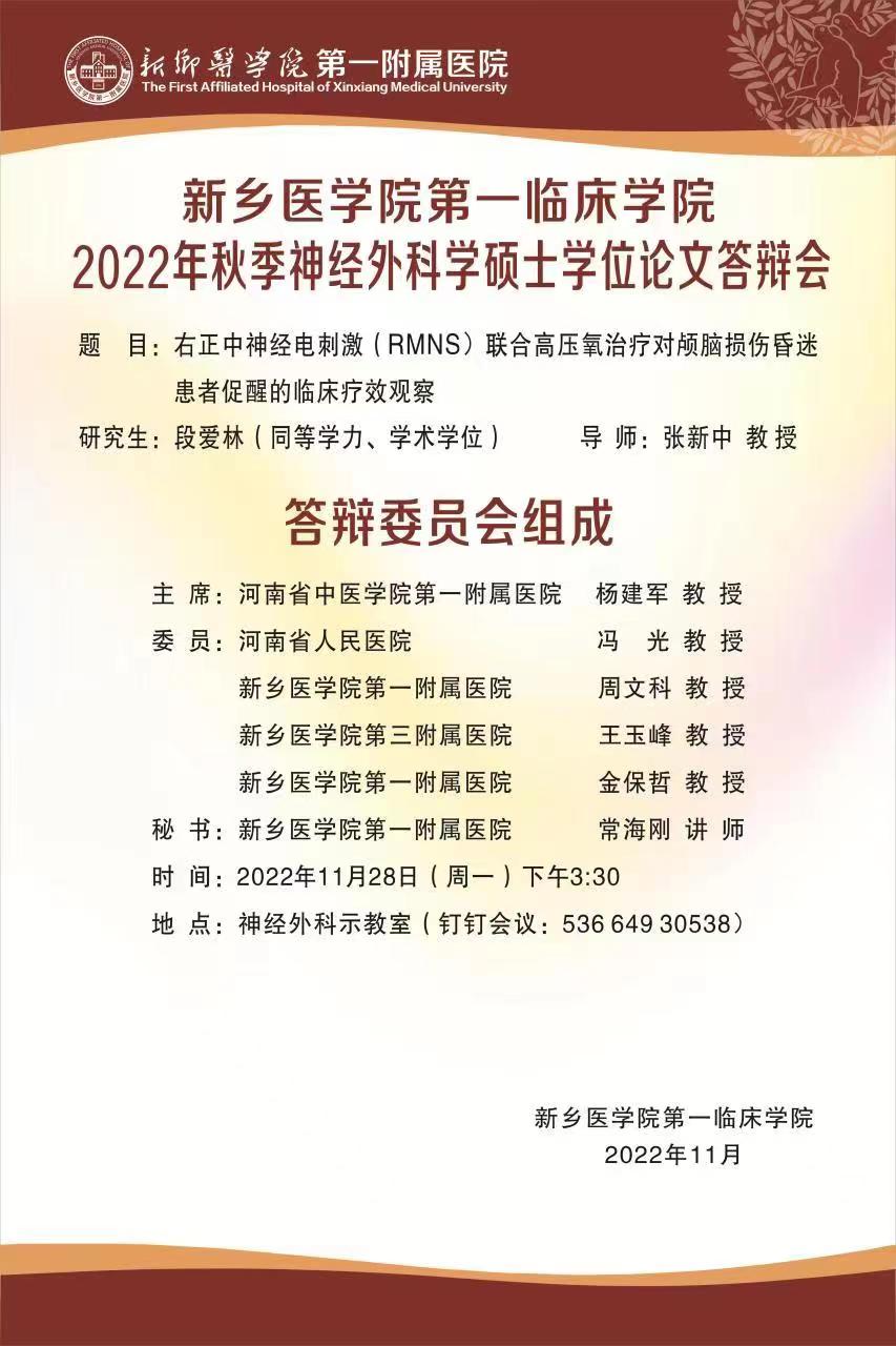 2022年秋季华亿在线手机版(大中国区)第一临床学院神经外科学硕士论文答辩会