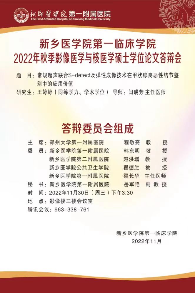 2022年秋季华亿在线手机版(大中国区)第一临床学院影像医学与核医学硕士论文答辩会
