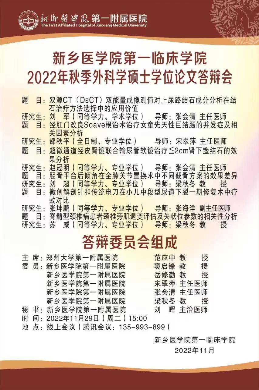 2022年秋季华亿在线手机版(大中国区)第一临床学院外科学硕士论文答辩会