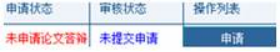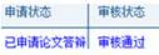 第二步:研究生处审核并发布答辩成绩。申请人提交论文答辩申请后,等待学校研究生处审核,审核通过后,审核状态提示“审核通过”如图示