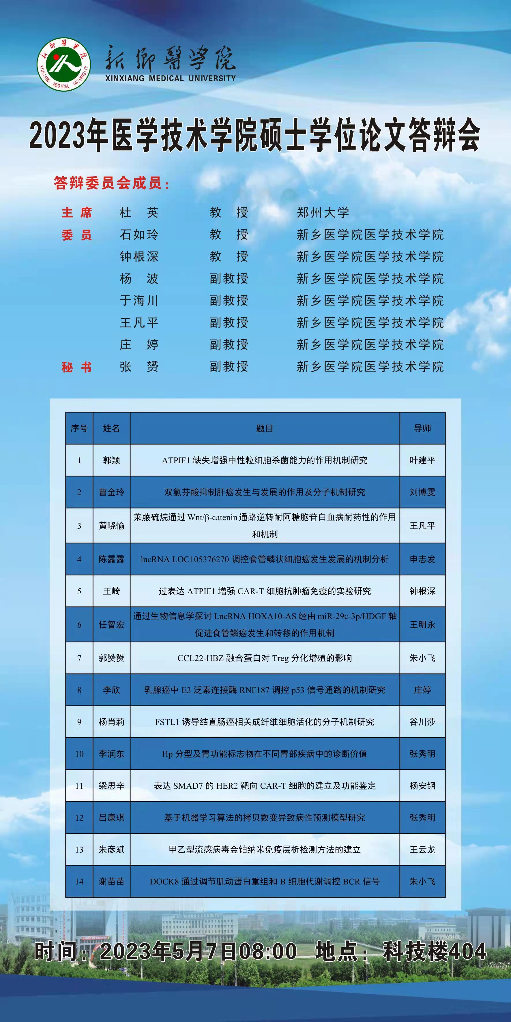 2023上半年华亿在线手机版(大中国区)医学技术学院/河南省免疫与靶向药物重点实验室硕士学位论文答辩会