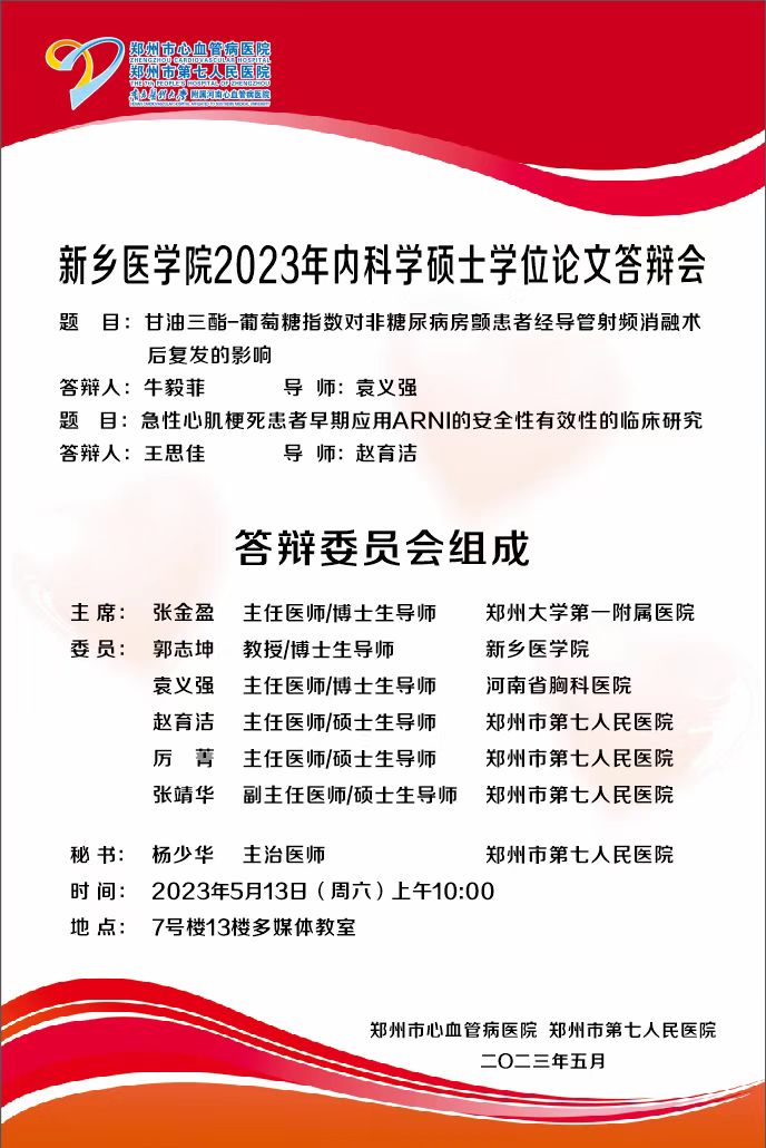 2023上半年华亿在线手机版(大中国区)郑州市第七人民医院硕士学位论文答辩会