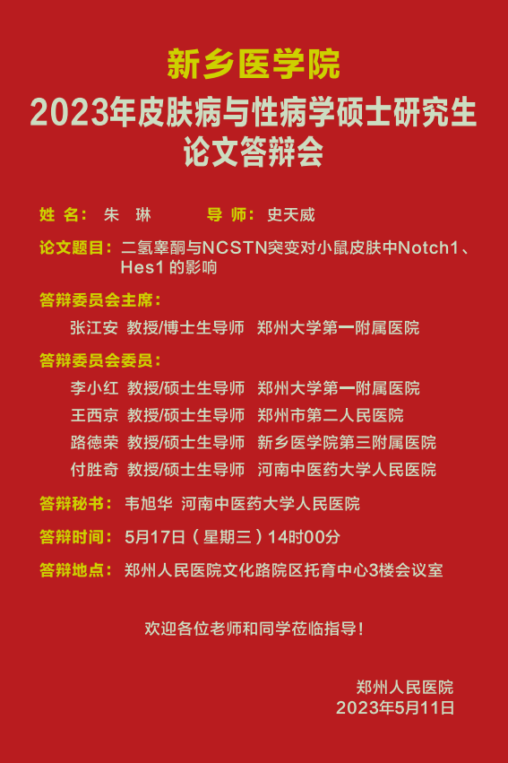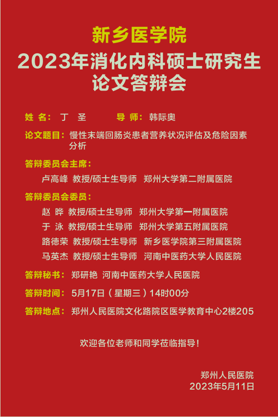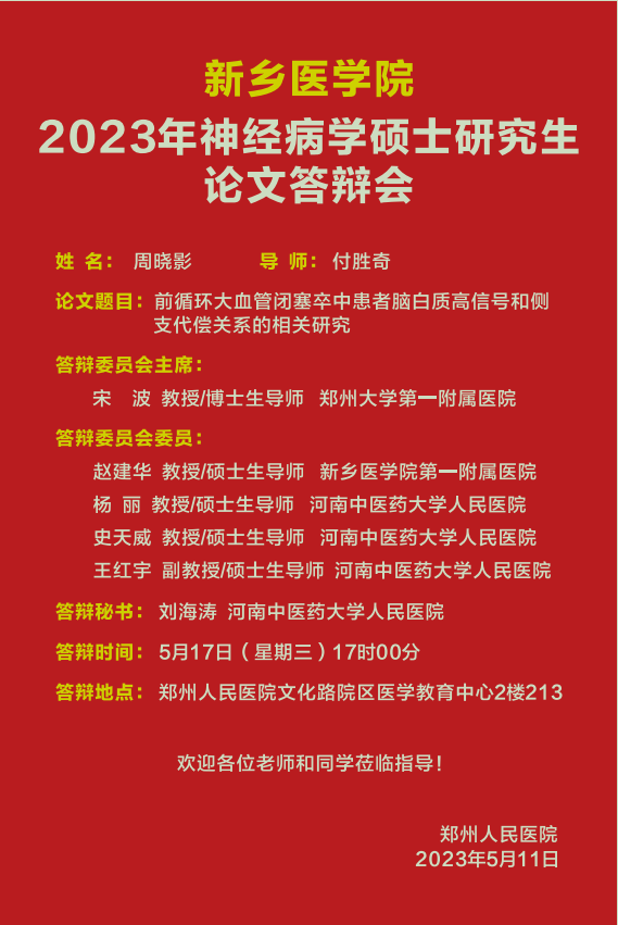 2023上半年华亿在线手机版(大中国区)附属郑州人民医院硕士学位论文答辩会