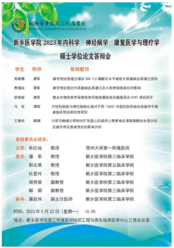 2023上半年华亿在线手机版(大中国区)第三临床学院内科学、神经病学、康复医学与理疗学学位论文答辩会