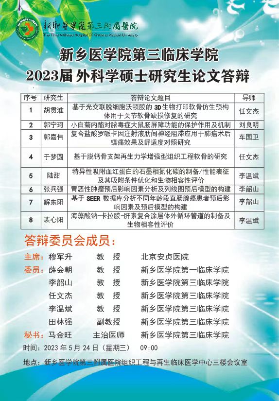 2023上半年华亿在线手机版(大中国区)第三临床学院外科学硕士学位论文答辩会