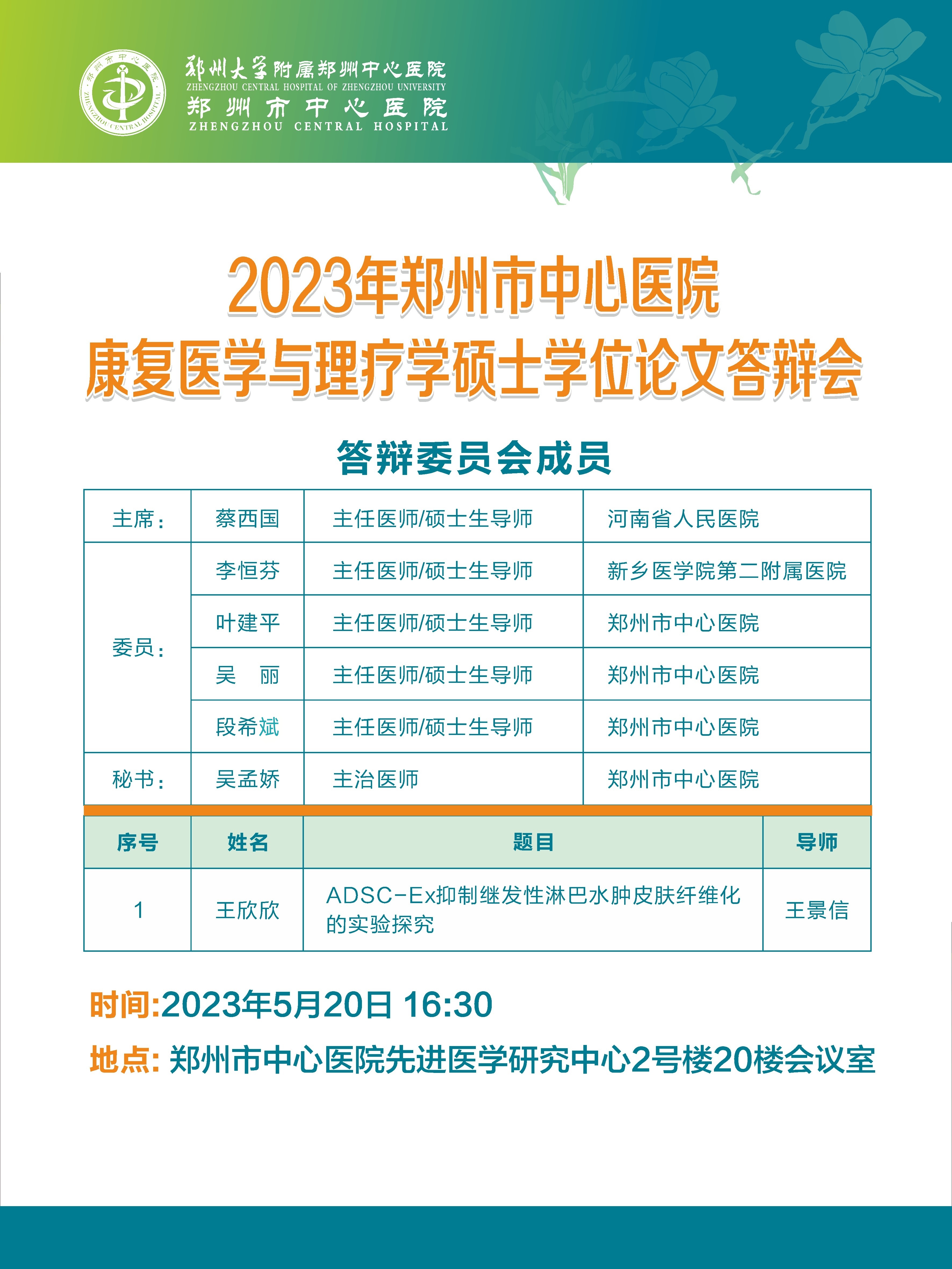 2023上半年华亿在线手机版(大中国区)(郑州市中心医院)康复医学与理疗学硕士学位论文答辩会