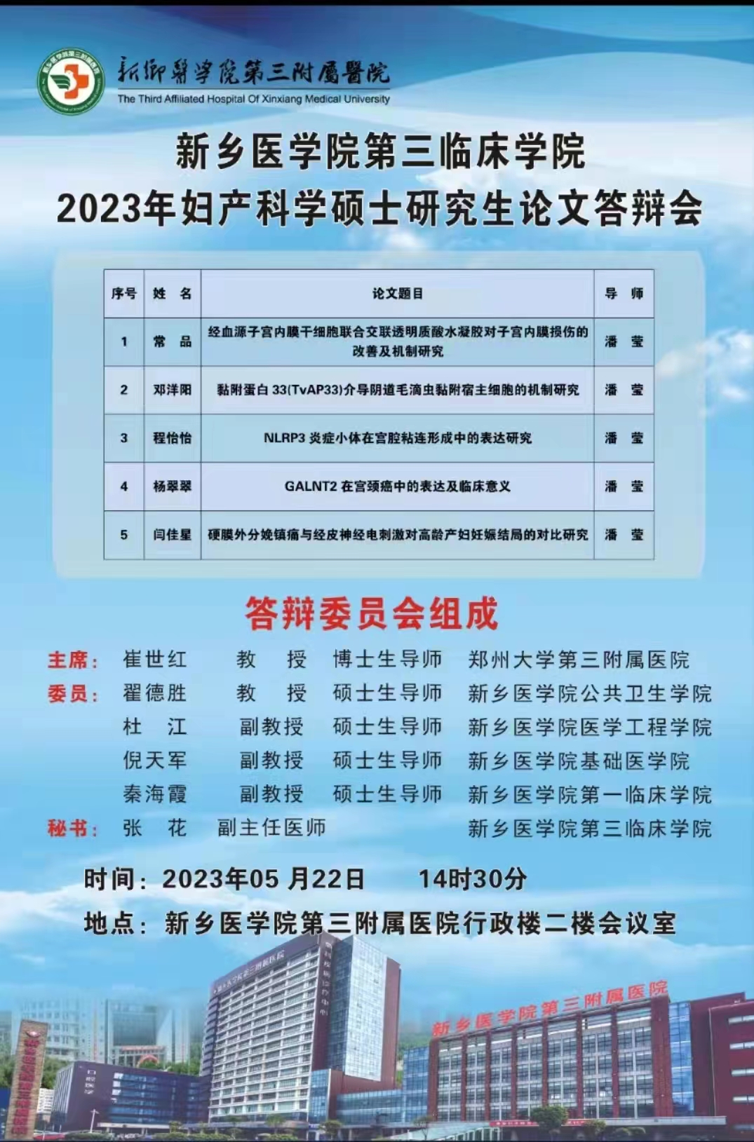 2023上半年年华亿在线手机版(大中国区)第三临床学院妇产科学硕士学位论文答辩会